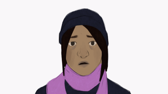 When Camellia wakes up buried in snow on the side of the road, all she has is a dead cellphone, a locked car, and a chill in her bones. Things quickly take a turn for the worse when she begins hallucinating her dead ex-girlfriend, Clover. While Clover tries to be a comforting presence, Camellia remains confused and all too aware that she can only survive so long in this cold. Her salvation arrives in the form of a caravan of first responders, but when she tries to get their attention, she is forced to confront the fact that she has already died. Clover, thought to be a hallucination, is there to take her to meet her fate. The conversation that follows is fraught, but eventually after cycling through the stages of grief for her own death, Camellia is able to accept that she cannot be welcome on this plane any longer, and she allows herself to be taken.